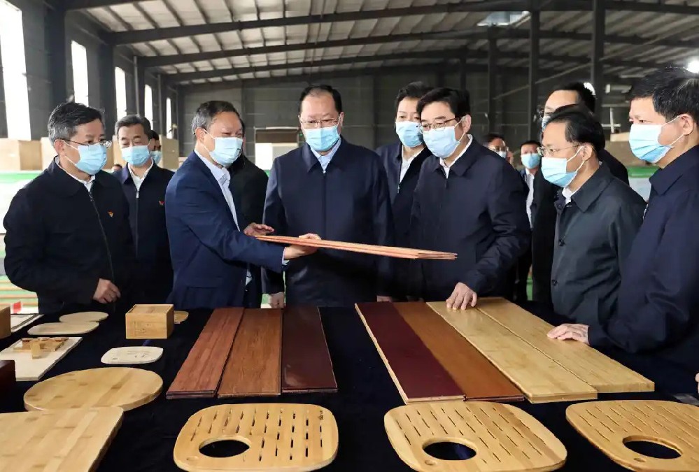 2025年6月16日,省政協(xié)副主席虢正貴來湖南桃花江竹材科技股份有限公司調(diào)研生態(tài)資源轉(zhuǎn)化與特色產(chǎn)業(yè)融合發(fā)展。公司董事長、省人大代表薛志成陪同并介紹情況。虢正貴充分肯定了桃花江竹材在竹資源利用及竹特色產(chǎn)業(yè)融合發(fā)展所取得的成果,他鼓勵(lì)企業(yè)繼續(xù)發(fā)揮龍頭優(yōu)勢,充分利用好桃江資源稟賦和產(chǎn)業(yè)優(yōu)勢,深化產(chǎn)學(xué)研融合,提升竹產(chǎn)業(yè)附加值,為民族地區(qū)生態(tài)資源高效轉(zhuǎn)化和特色產(chǎn)業(yè)融合發(fā)展探索更多經(jīng)驗(yàn)。